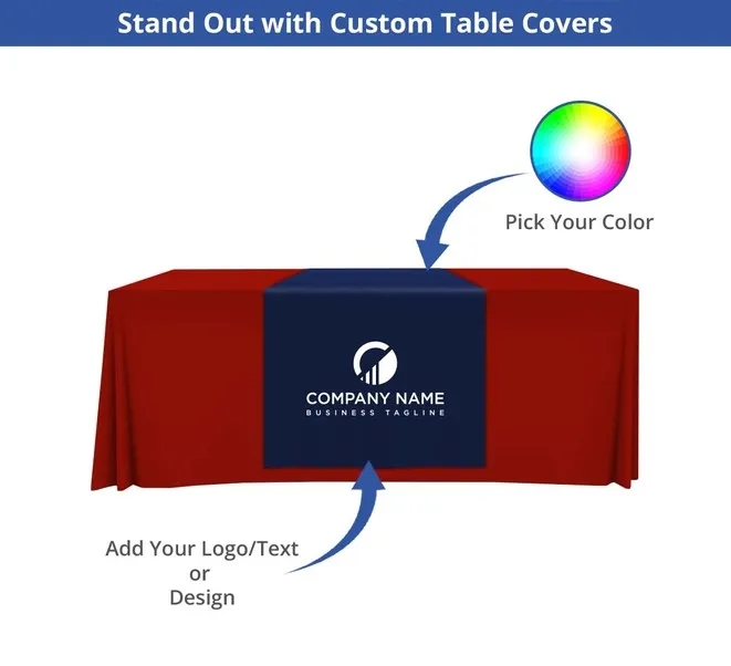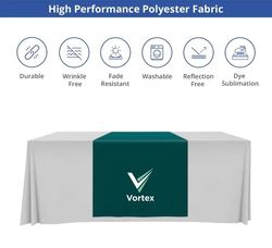 Table runners feature high-quality polyester fabric printed with vibrant full-color designs at 1440 DPI using dye-sublimation printing, ensuring durability and vividness for any event or display setting.