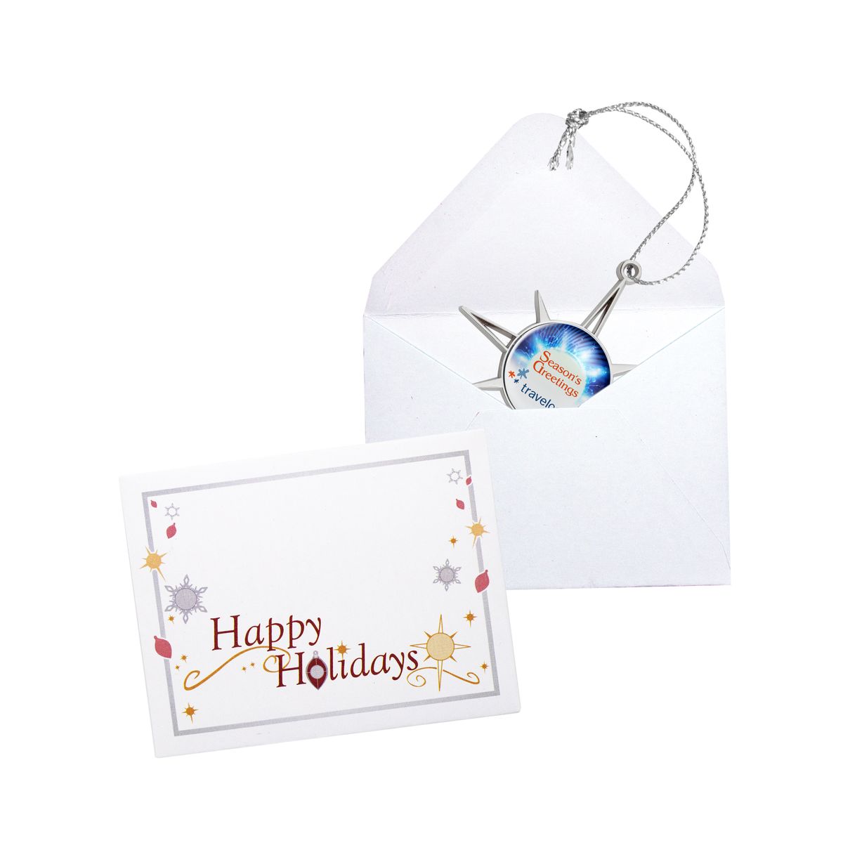Each ornament includes a silver metallic hanging cord and comes packaged in a stock decorative gift envelope for easy holiday giving -- or upgrade to deluxe gift packaging.
